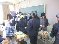 5日(木)3年生5組の配膳の様子 ~ピリ辛メニュー!~