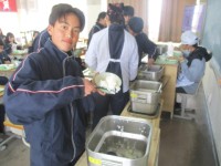 5日(木)2年生3組の配膳の様子 ~かぼちゃのほうとう風~ 公開日 2026/02/05 更新日 2026/02/05 1年生 2年生3組の配膳の様子です。汁物として、山梨県の郷土料理にヒントを得た「かぼちゃのほうとう風」が登場しました。たっぷり入った具材の野菜と鶏肉が、赤みそと白みそが絶妙にブレンドされた味わい深いスープでしっかりと煮込まれていました。 +3 1年生