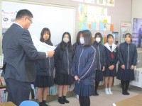1月24日(土)に開催された第80回堺市民駅伝競走大会(於・大泉緑地)の中学生女子の部にて、2位の成績をおさめた部員たちに賞状が授与されました。