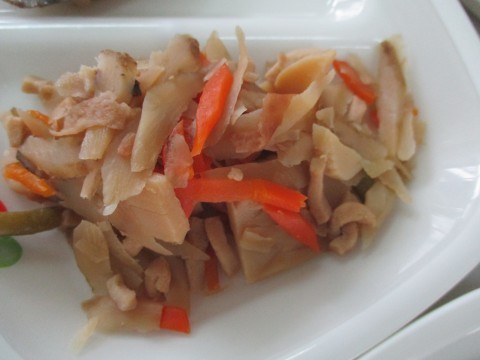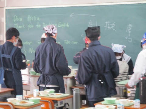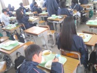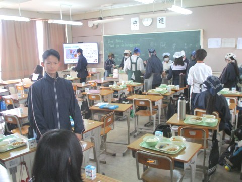 2日(月)2年生2組の配膳の様子 ~Scattered sushi ~ 公開日 2026/03/02 更新日 2026/03/02 1年生 2年生2組の配膳の様子です。主菜は、桃の節句にちなんだ「ちらしずし」でした。生徒は、丁寧に煮上げられたにんじん、れんこん、たけのこなどの具材をご飯の上にのせて、セルフちらしずしを作りました。特筆すべきは、具材は、味の染みた高野豆腐でした。伝統的な和食文化を、五感で味わえる貴重な時間となりました。 1年生