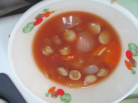 5日(木)Minestrone soup ~給食の献立~ 公開日 2026/03/05 更新日 2026/03/05 1年生 この日のメインスープは、白いんげん豆がたっぷり入ったミネストローネでした。豆類は、タンパク質が豊富な食材で、特に白いんげん豆は食物繊維やカルシウムが多く、骨を丈夫にす効果があるようです。栄養満点のスープで、午後の活動に向けてエネルギーをチャージすることができました。 1年生