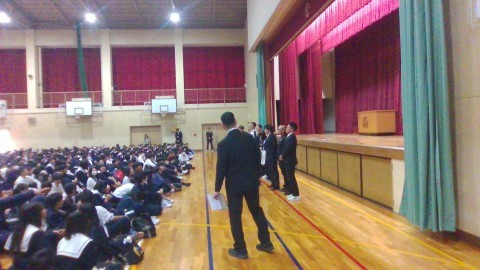 続いて、校長先生、生徒指導主事の中田先生、学力向上推進担当の関戸先生からお話がありました。