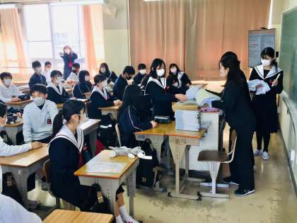 式後の2年生5組の学活の様子です。担任は、国語担当の先生です!