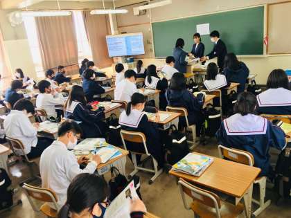式後の2年生6組の学活の様子です。進級した2年生に、多くの教科書が給与されました。