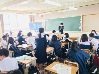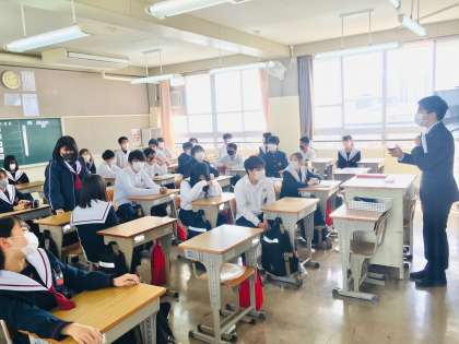 自己紹介!〜2年生6組の学活〜 公開日 2022/04/11 更新日 2022/04/11 学校 2年生6組では、1時間目に生徒一人ひとりが自己紹介を行いました。1年次の国語の授業で学習したスピーチのコツを意識しながら、生徒は自分の思いを表現していました。