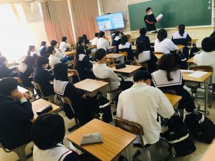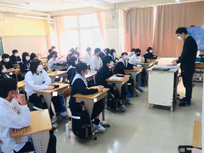 3年生では、週に1回、問題演習を中心とした数学Bの授業があります。1回目の授業では、担当教員より授業の進め方や使用する教材についての話がされています。