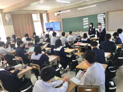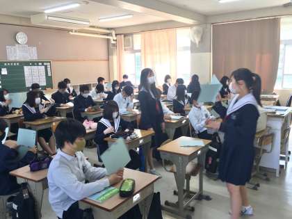 新学習指導要領の実施に伴い、昨年度より英語の授業で使用する教科用図書の出版社が変更となっています。真新しい教科書のページをめくり、今後の学習を楽しみにしている生徒の姿が見られています。