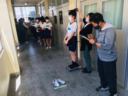 ヘルスチェック!〜学校検診スタート〜 公開日 2022/04/13 更新日 2022/04/13 学校 校内での各種健康診断は、学校保健安全法という法律に基づき行われており、学校における生徒の健康の保持増進を図るために実施されています。11日(火)には、全学年で二測定(身長・体重)が行われました。 今後、4・5月には耳鼻科、歯科、内科、眼科などの検診が予定されています。