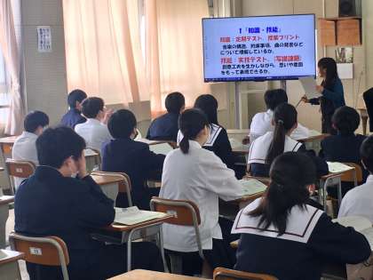 なお、1年生全生徒には、後日、各教科の授業時や家庭での学習方法、成績のつけ方を掲載した「学力向上のてびき」を配付する予定です。