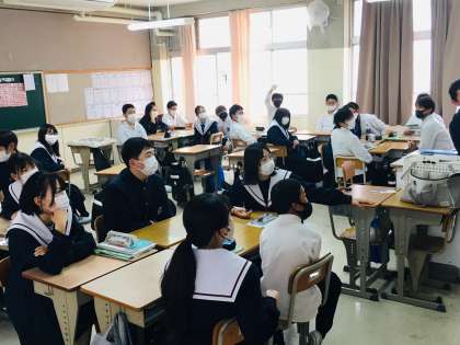 3年生:英語の授業〜グループで考える!〜 公開日 2022/04/16 更新日 2022/04/15 学校 3年生の英語の授業では、課題に対する答えをグループで考え合う活動が取り入れられています。 ※写真は、3組の授業の様子です。