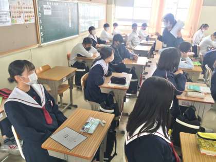 2年生2組の授業の様子〜忘れ物チェック!〜 公開日 2022/04/18 更新日 2022/04/18 学校 18日(月)、2年生2組の5時間目は、家庭科の授業でした。授業のはじまりの場面では、必要物が机上にきちんと準備されてるかを確認していました。