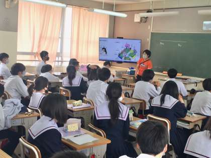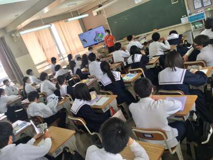 2年生の英語の授業では、Small Talkが取り入れられています。教員と生徒、または生徒と生徒で双方向による英語でコミュニケーションをする場面が見られています。