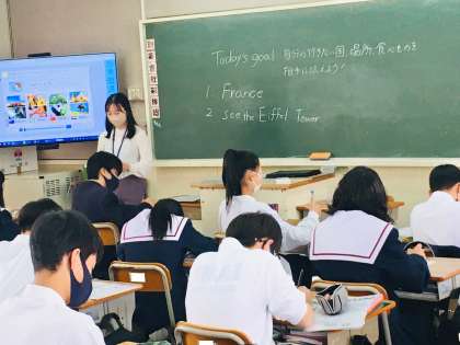 1年生3組の授業の様子〜行きたい国はどこですか?〜 公開日 2022/04/20 更新日 2022/04/19 学校 19日(火)、1年生3組の1時間目は、英語の授業でした。生徒は、行きたい国について尋ねたり、伝えたりする表現について学習していました。