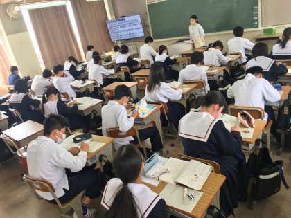 19日(火)、2年生7組の3時間目は、国語の授業でした。生徒は、椎名 誠さんが著した「アイスプラネット」について学習していました。