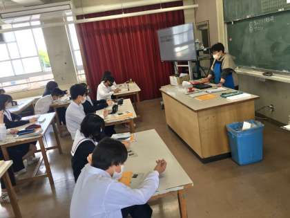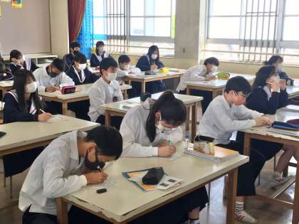 2年生は、美術の授業で、クロード・モネの絵画について学習しています。生徒にとっては、名画の美しさをじっくりと鑑賞する機会になっているようです。