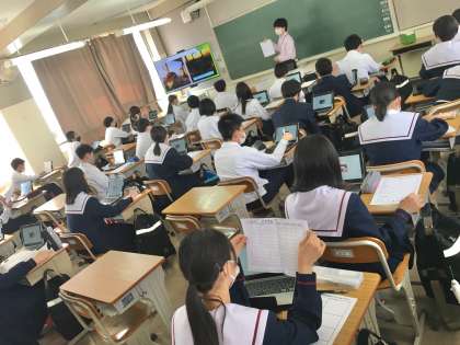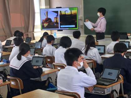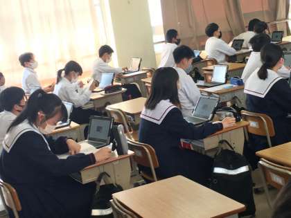2年生:社会の授業〜観光案内パンフレットを作ろう!〜 公開日 2022/04/21 更新日 2022/04/20 学校 2年生は、社会の授業で、観光案内パンフレットを作成に取り組んでいます。自身の興味のある都道府県を観光という視点で調べることを通して、その地域の自然環境、産業、生活・文化、交通などの特徴がより多面的に理解が深まりそうです。 ※写真は、7組の授業の様子です。
