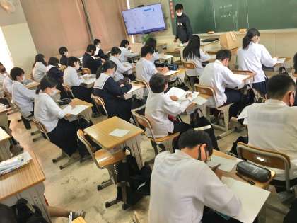6日(金)、2年生5組の3時間目は、数学の授業でした。