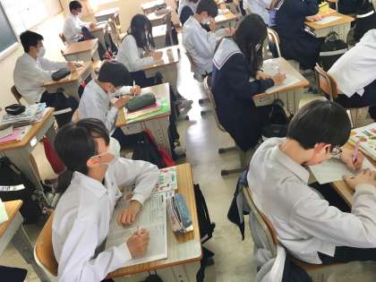 6日(金)、2年生2組の3時間目は、家庭科の授業でした。個食の問題点について話し合っていました。