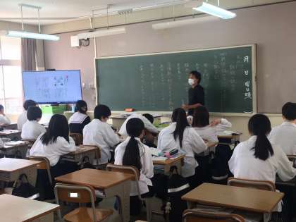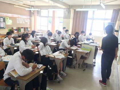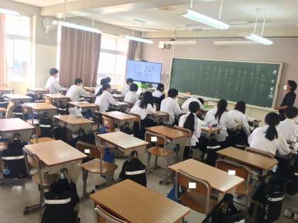 生徒は、在籍学級の教室で学習するグループと国語少人数教室で学習するグループの2グループに分かれて授業を受けています。