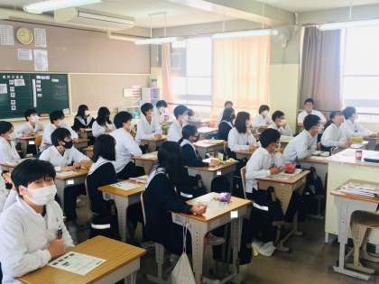 2年生:技術の授業〜クロマグロの完全養殖!〜 公開日 2022/05/11 更新日 2022/05/11 学校 2年生は、技術の授業で、水産生物を育てる技術について学習しています。 生徒は、和歌山県串本町で取り組まれているマグロの養殖を紹介する動画を見て、その技術だけでなく、技術者が養殖にかける思いについても考えています。 ※写真は、6組の授業の様子です。