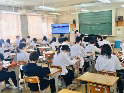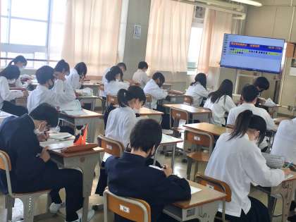 1年生:音楽の授業〜中間テストに向けて! 公開日 2022/05/11 更新日 2022/05/10 学校 来週の中間テストでは、20日(金)に音楽の筆記試験が予定されています。テストをひかえ、授業では、学習のポイントが説明されています。 ※写真は、3組の授業の様子です。