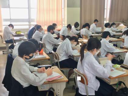11日(水)、1年生3組の2時間目は、数学の授業でした。負の数がまじった減法の学習が始まっていました。