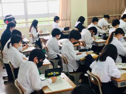 13日(金)、1年生1組の3時間目は、社会の授業でした。1組では、社会の好きな生徒が多いようです。