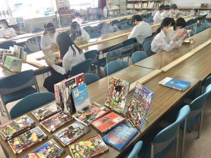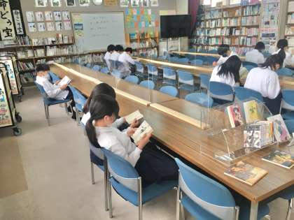 16日(月)の昼休みより、学校図書館が本格的に開館されました。今日の日を楽しみに多くの生徒が訪問をしてくれました。