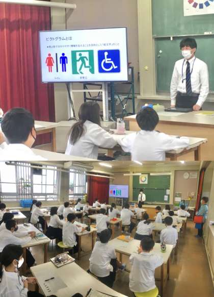 1年生:美術の授業〜ピクトグラムを考える!〜 公開日 2022/06/07 更新日 2022/06/06 学校 1年生は、美術の授業で、ピクトグラムについて学習しています。校内にあるさまざまな教室を現す、誰が見ても分かりやすいピクトグラム作りに取り組んでいます。 ※写真は、2組の授業の様子です。