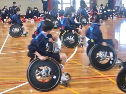 2年生:車いすバスケットーボール体験から学ぶ4 公開日 2022/06/07 更新日 2022/06/06 学校 サカイサンズのみなさま、本日は、何かとお忙しい中、平井中学校にご来校いただき、ありがとうございました!