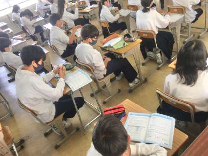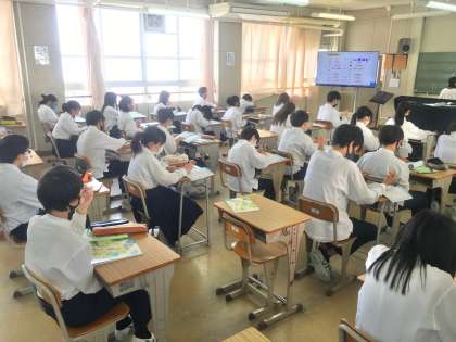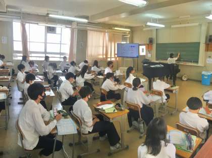 7日(火)、1年生3組の2時間目は、音楽室での音楽の授業でした。
