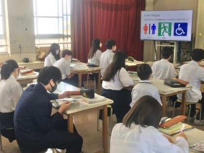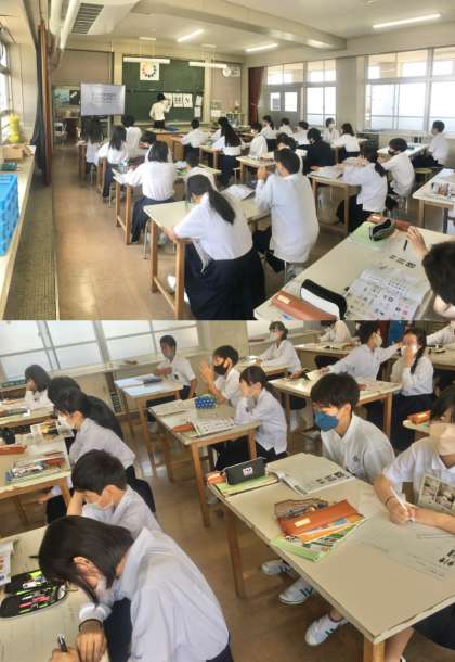 1年6組の授業(美術)の様子! 公開日 2022/06/07 更新日 2022/06/07 学校 7日(火)、1年生6組の2時間目は、美術の授業でした。教育実習生の研究授業で、在籍の大学より先生が参観に来られていました。