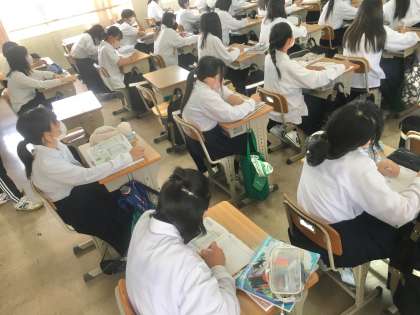 1年生:保健体育の授業〜健康の成り立ち〜 公開日 2022/06/08 更新日 2022/06/08 学校 1年生の女子生徒は、保健体育の授業で、健康の成り立ちについて学習しています。授業では、健康を成り立たせる要因について話し合われています。 ※写真は、3・4組の授業の様子です。