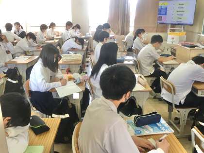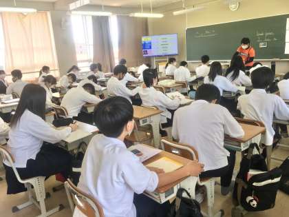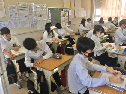 8日(水)、2年生4組の1時間目は、英語の授業でした。