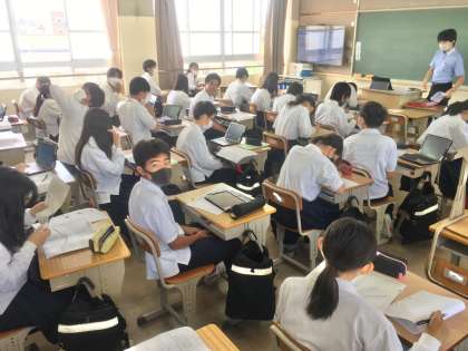 2年6組の授業(社会)の様子! 公開日 2022/06/08 更新日 2022/06/08 学校 8日(水)、2年生6組の1時間目は、社会の授業でした。生徒は、PC端末を利用して、担当教員からの課題に取り組んでいました。