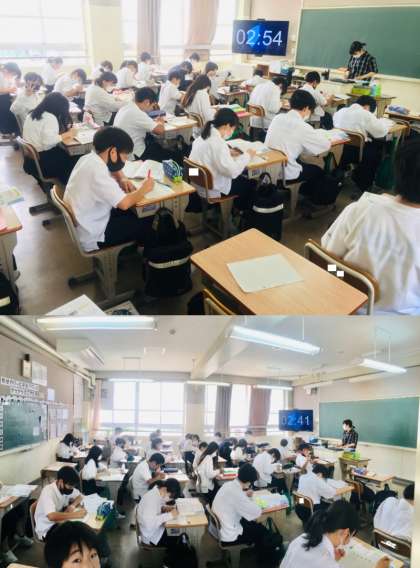 8日(水)、1年生6組の3時間目は、国語の授業でした。生徒は、漢字の書き取り練習に集中して取り組んでいました。