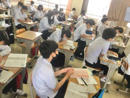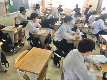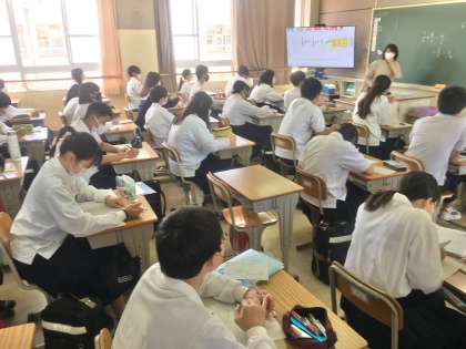 9日(木)、2年生2組の1時間目は、担任の先生による数学の授業でした。