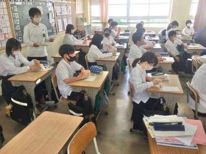 9日(木)、1年生6組の1時間目は、数学の授業でした。