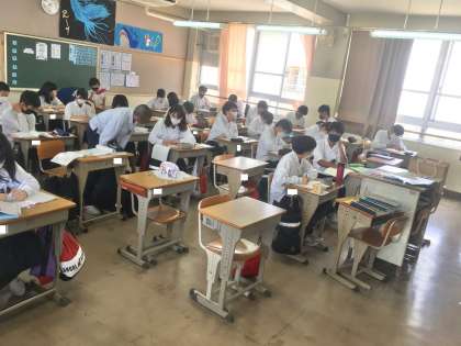 10日(金)、2年生1組の3時間目は、担任の先生による数学の授業でした。