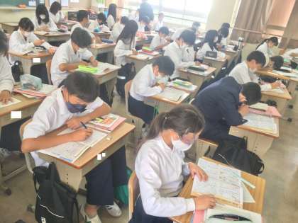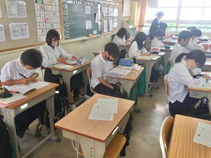 10日(金)、1年生6組の3時間目は、国語の授業でした。文法分野の学習が始まっていました。