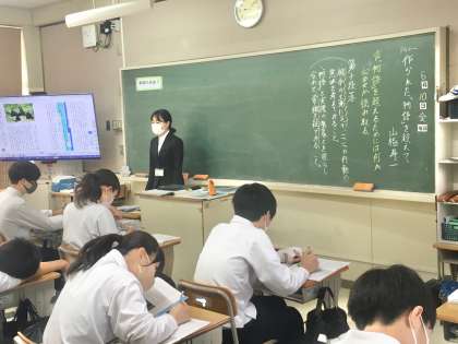3年生:国語の授業〜論説文の読み方〜 公開日 2022/06/10 更新日 2022/06/10 学校 3年生は、国語の授業で、教材「作られて物語を越えて」を通して、論説文の読み方について学習しています。 ※写真は、4組の授業の様子です。