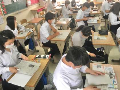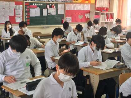 13日(月)、3年生5組の2時間目は、社会の授業でした。