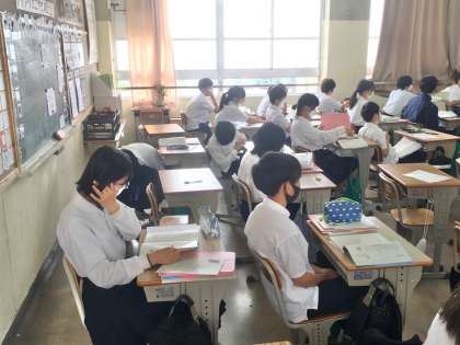 1年生の国語の授業では、詩の学習が始まっています。今後、「1枚の絵」「朝」、「未確認飛行物体」などの詩を読んで、描かれている情景を考えていきます。