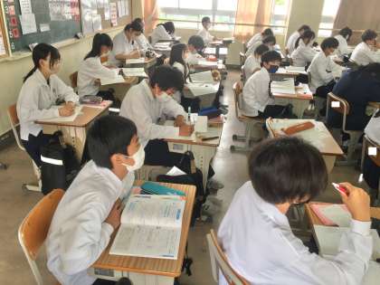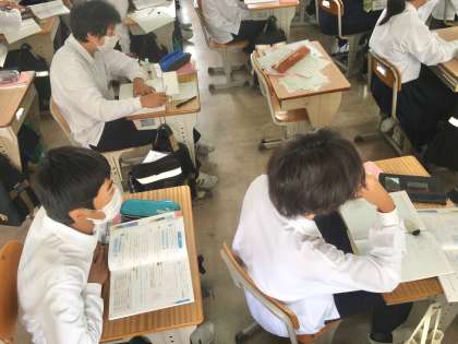 1年生:数学の授業〜素因数分解の利用〜 公開日 2022/06/14 更新日 2022/06/14 学校 1年生は、数学の授業で、素因数分解の利用について学習しています。素因数分解を使って、ある数の約数をすべて求めたり、ある組の数の最大公約数を求めたりしています。 ※写真は、5組の授業の様子です。
