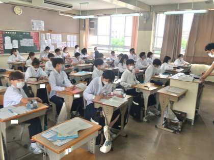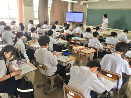 1年生の数学の授業では、文字式の学習が始まっています。今後の学習を通して、数量の関係などを一般化して表現できるなど文字を用いて式で表すことの良さに気づいてほしいと思います。