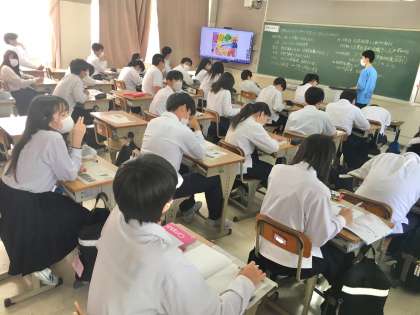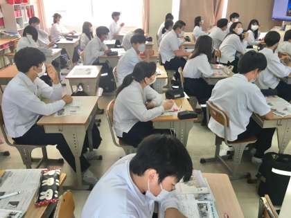 3年生5組の授業(社会)の様子 公開日 2022/06/18 更新日 2022/06/17 学校 17日(金)、3年生5組の3時間目は、社会の授業でした。生徒は、冷戦後の世界情勢の変化について学習していました。