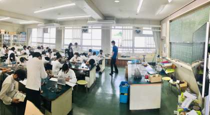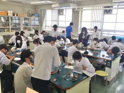 2年生4組の授業(理科)の様子 公開日 2022/06/18 更新日 2022/06/17 学校 17日(金)、2年生4組の3時間目は、担任の先生による理科の授業でした。理科室で実験が行われていました。