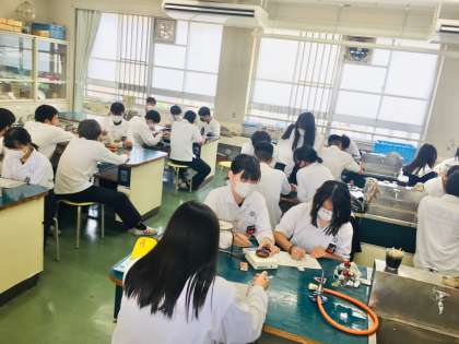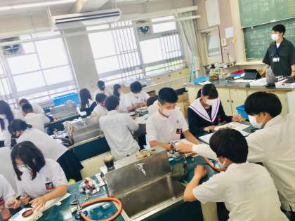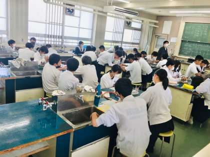 2年生:理科の授業〜化学変化における物質の質量〜 公開日 2022/06/18 更新日 2022/06/18 学校 2年生は、理科の授業で、化学変化における物質の質量について学習しています。銅粉の質量を班ごとに変えて加熱し、銅粉の質量とくっつく酸素の質量との間には、どのような量的な関係がみられるのかを実験を通して調べています。 ※写真は、2組の授業の様子です。