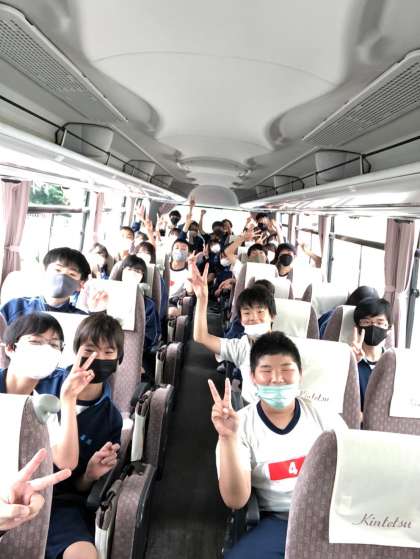 学校を出発しました。バス内の様子です。