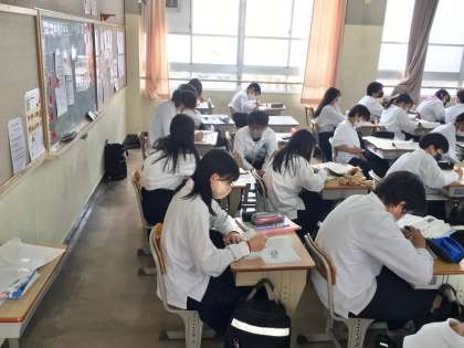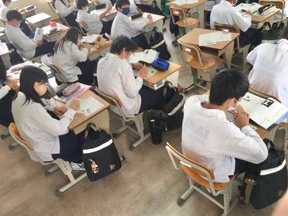 1年生5組の授業(国語)の様子 公開日 2022/06/20 更新日 2022/06/20 学校 20日(月)、1年生5組の3時間目は、国語の授業でした。生徒は、学習した内容を振り返るワークシートに取り組んでいました。